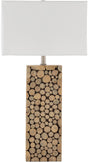 - Body: Brown; Shade: White; Finial: Metallic - Nickel; Harp: Metallic - Nickel; Cord: Translucent Linen Shade
