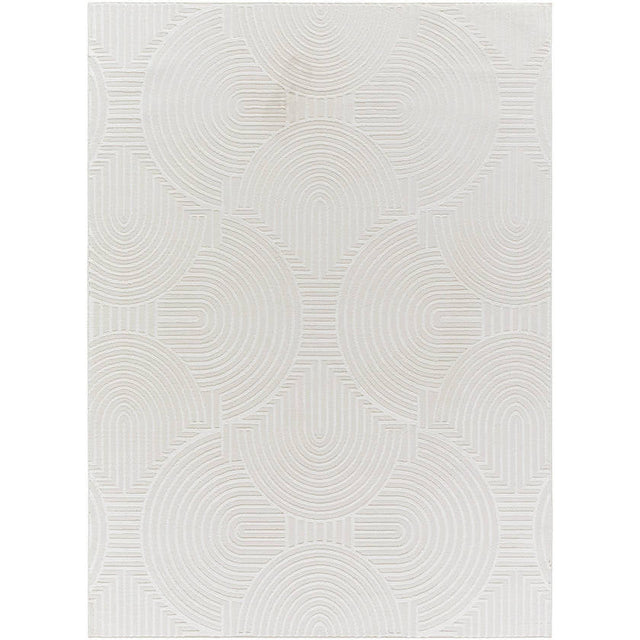 Elevate your space with the Ramsay Modern Cream Ivory Washable Area Rug, a masterpiece that effortlessly blends artistry and practicality. Crafted from 100% recycled PET yarn, this rug not only delivers on sustainability but also provides a plush, inviting texture underfoot. The elegant fusion of soft cream and ivory hues creates a serene and versatile foundation, making it an ideal choice for modern, minimalist, or transitional interiors. Designed with convenience in mind, this machine-washable rug ensures effortless maintenance, allowing you to enjoy beauty without the stress of upkeep.