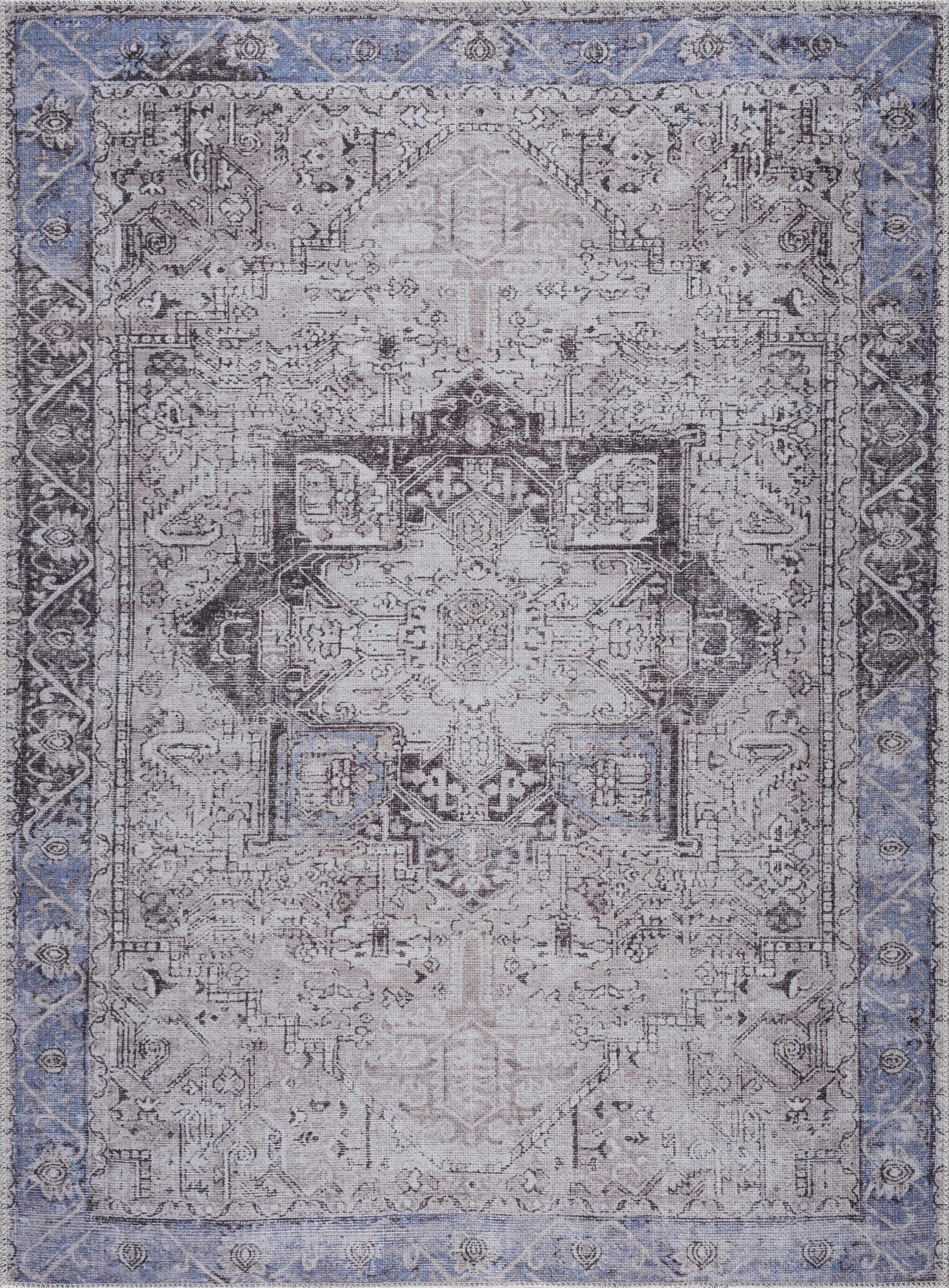 Rosman Blue&Beige Washable Area Rug