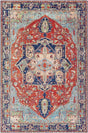 Vosges Traditional Bright Red Area Rug is a vibrant collaboration of tangerine and navy colors. Influenced by the Moroccan interior design, this brilliant atmosphere is the utter refinement your home deserves. Decorating with culture and richness is now affordable and easy to access with Mark & Day.