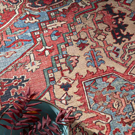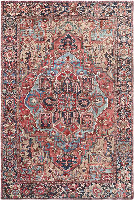 Manche Traditional Bright Red/Navy/Wheat/Ice Blue/Grass Green/Ivory Area Rug