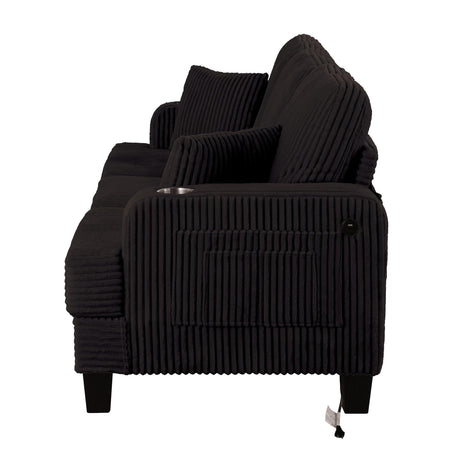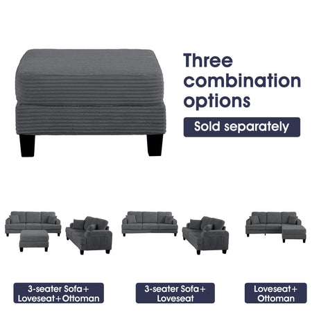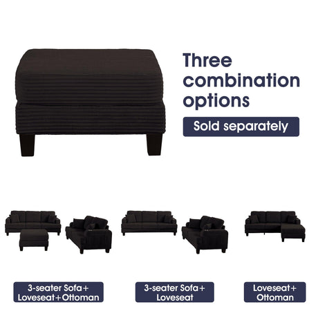 Beige 3 Piece Set Comfy Sofa Couch 3-Seater & Loveseat Sofa with Storage Ottoman with USB