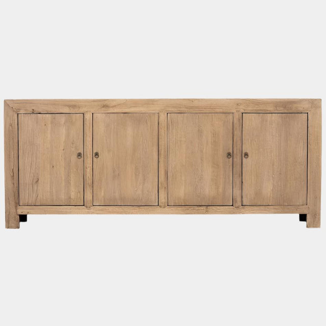 Functional, classic and neutral this piece boasts four doors with shelving with antique brass handle, the elm sideboard lends itself to a range of interiors from coastal to scandi-rustic.