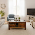 The perfect fusion of a stupendous piece of furniture that concomitantly solves storage problems is a coffee table with an exquisite design to amplify your ambiance to the maximum.  Made of solid wood, the painted patina of this chest acts like a beautifier and adds a shabby chic touch to it while the use of reclaimed wood makes it distinctive all the more. It has a lift-up top to keep your pillows, blankets, chargers, laptops, remotes, etc handy and help to maintain clutter-free look. Adorned with delightful hand-forged metal grill accents on all four sides, this chest will surely intrigue your guests!