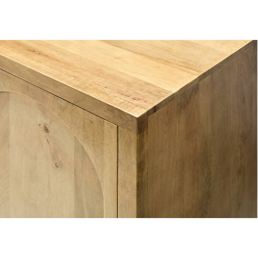 Rooted in craftsmanship and modern sensibility, the Stephenie Brown Cabinet features arched door panels that soften its contemporary structure. The vertical handles are sculptural yet minimal, blending seamlessly into the facade for a clean, uncluttered look. The natural lacquer finish enhances the warmth of the mango wood while letting its subtle grain variations shine through, making each piece uniquely yours.