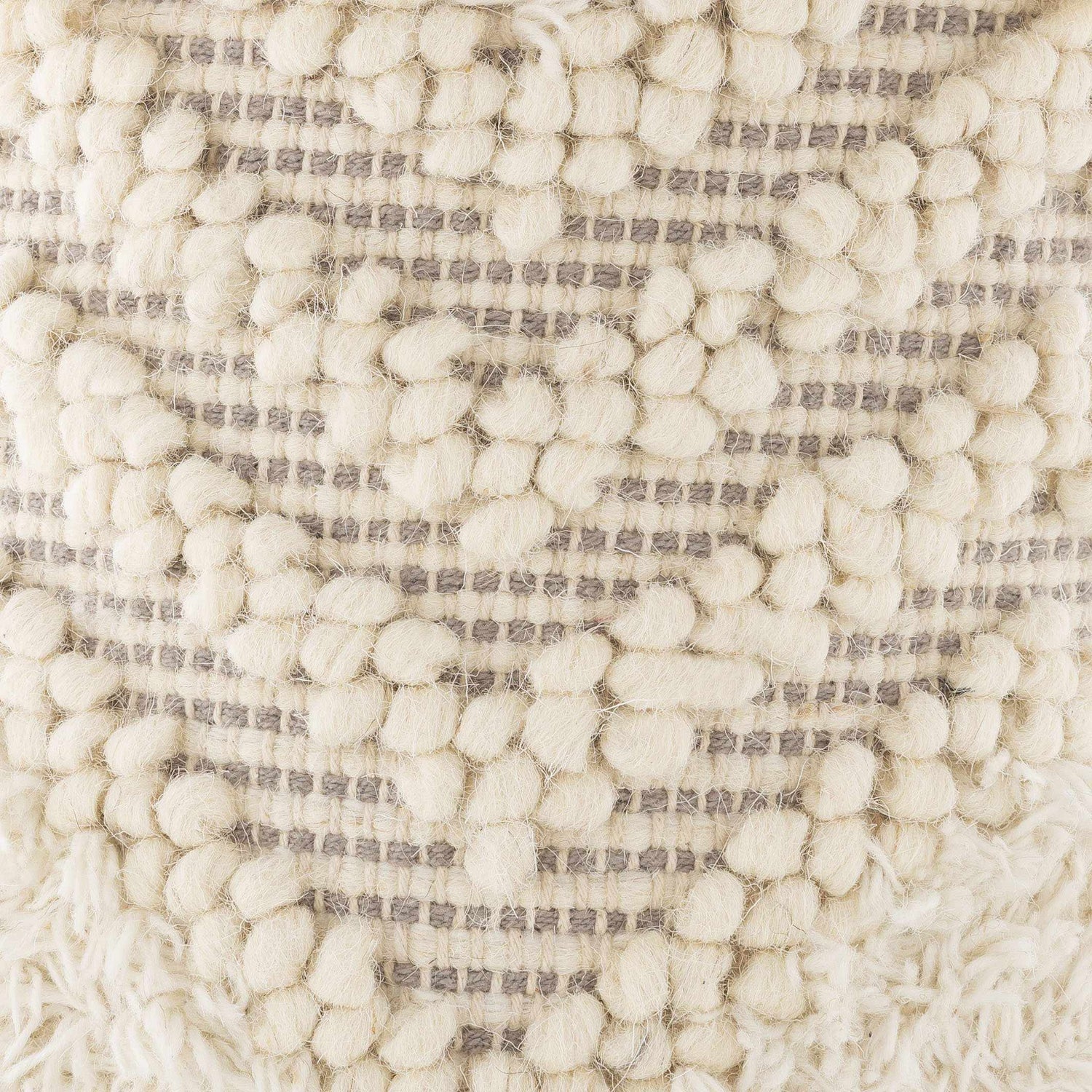 The Virovitica Decorative Accent is a testament to skilled artisanal craftsmanship, handwoven in India from a luxurious blend of cotton and wool. This combination provides a soft, inviting texture and robust durability. The basket's design is a symphony of tactile elements, featuring intricate weaving patterns, plush shaggy accents, and charming raised textures in soothing white, cream, and medium gray. These varied textures and delightful pom-poms enrich your decor with genuine, handcrafted warmth and visual depth.