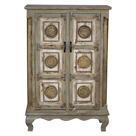 Regular price From $950.75Unit price /UnavailableDistressed White 2 Door Small Cabinet With Brass Accents