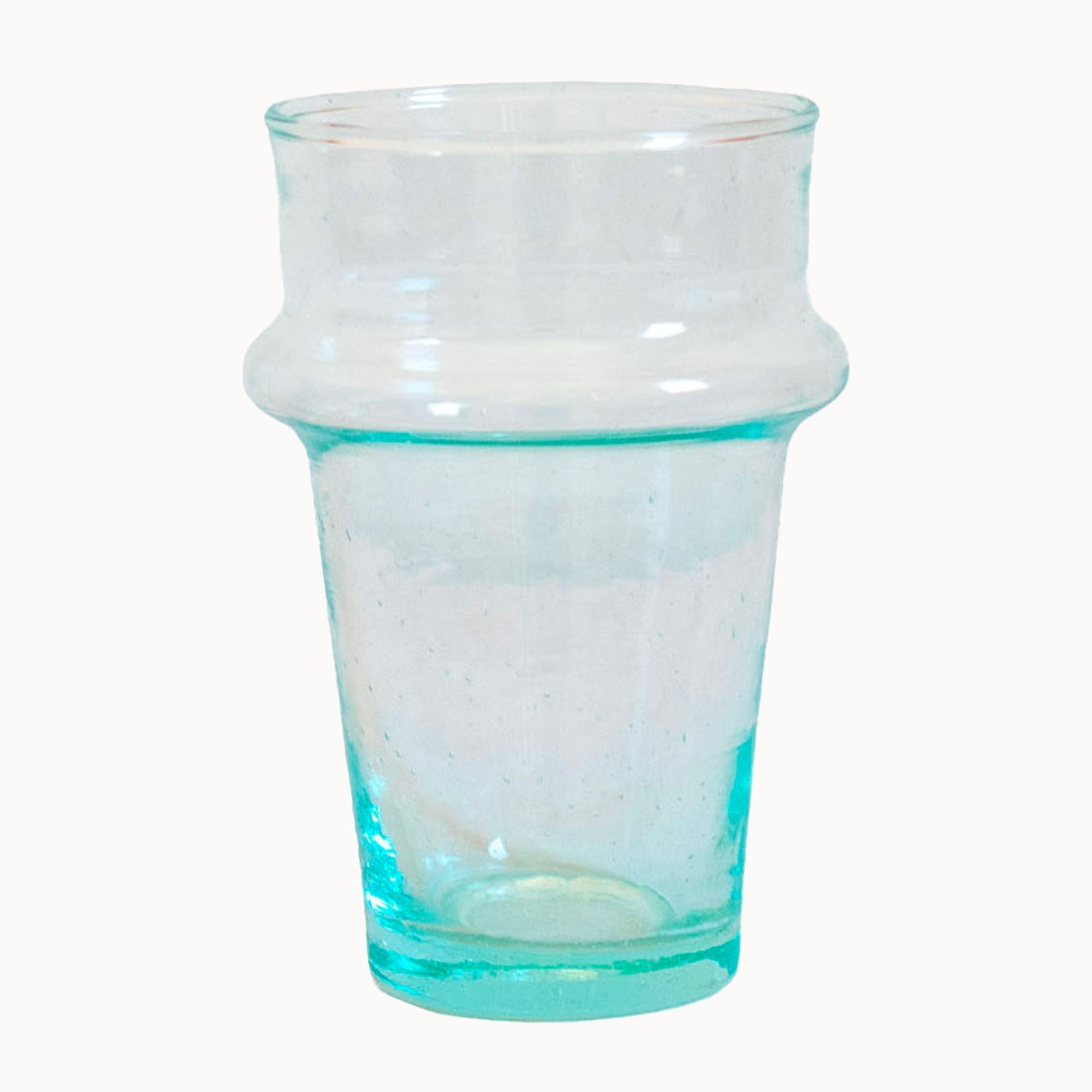 Enjoy your tea or juice in style with this charming Beldi Glass Cup. Made from recycled glass and handblown by Moroccan artisans