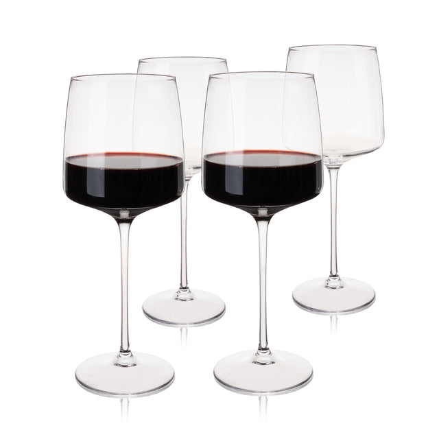 This set of angled Bordeaux wine glasses combines Europe’s legendary crystal glass craftsmanship with striking design. The result is an elegant stemmed wine glass set made with premium materials for perfect performance.