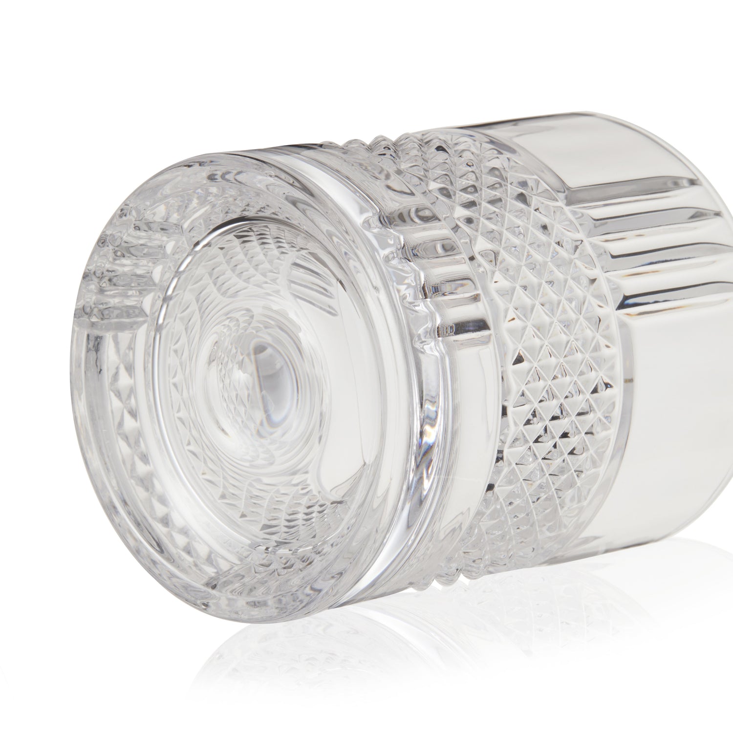 Designed for effortless swirling, this unique rotating whiskey glass spins smoothly thanks to a hidden rounded base. Complete with cut-crystal banded details, it’s an elevated rocks glass with an unexpected twist.