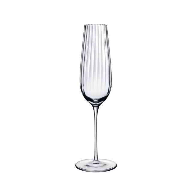 This flute glass is a must-have for the lovers of fizz. Part of the NUDE Round Up collection, it possesses all the defining features of the series: a gently curved shape, a tapered rim and a long, slender stem. Handcrafted from lead-free crystal and finished with a mesmerising vertical pattern, you can complete the family with red and white wine glasses from the edit.