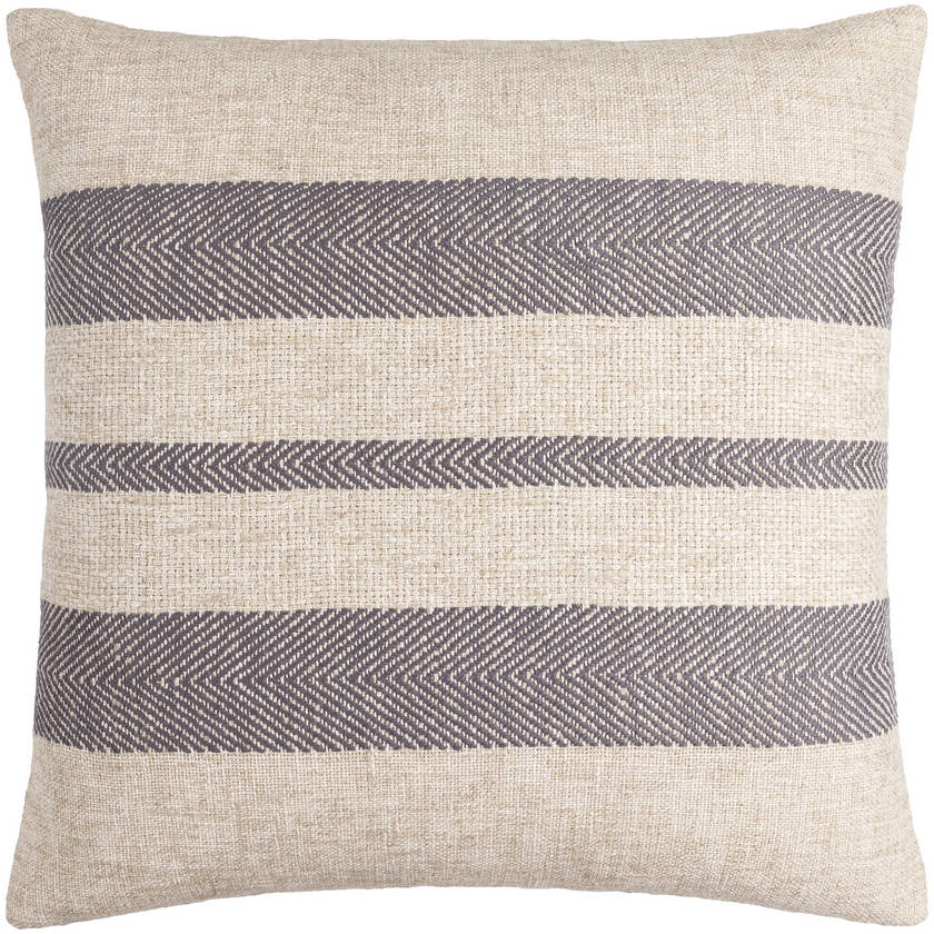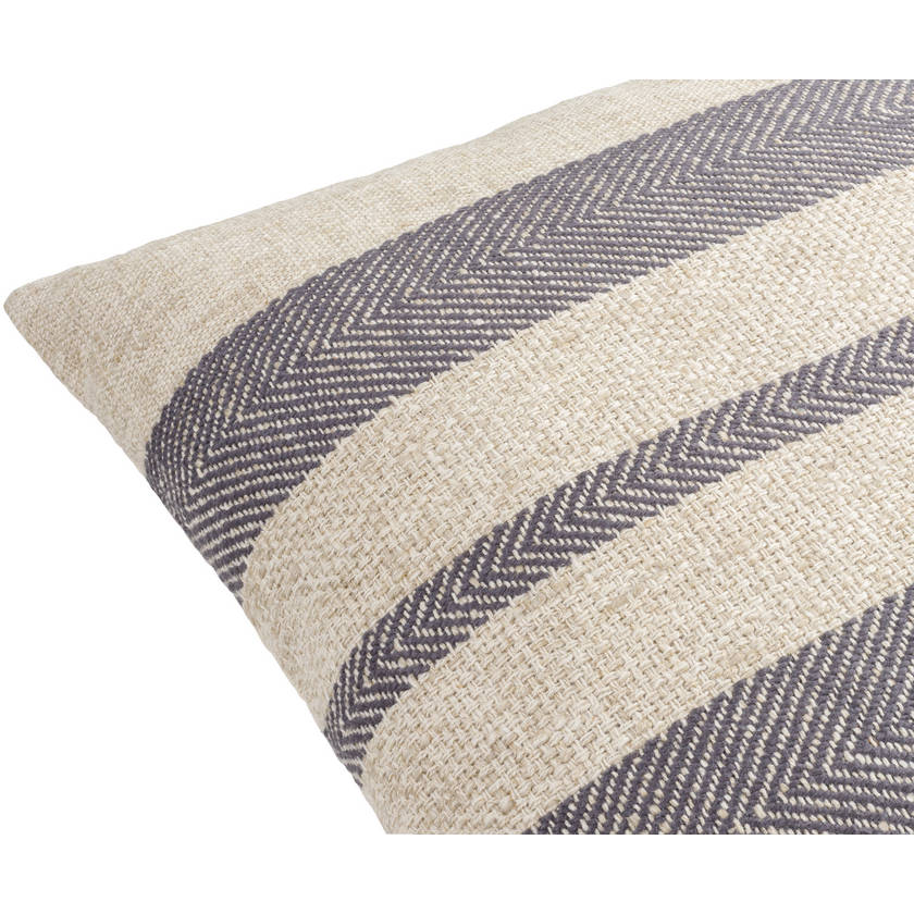 Its neutral color schemelight beige intersected by deep charcoal stripesmakes it easy to mix and match with seasonal accents, bold patterns, or natural textures. Its the kind of piece that works in the background, but still gets noticed.
