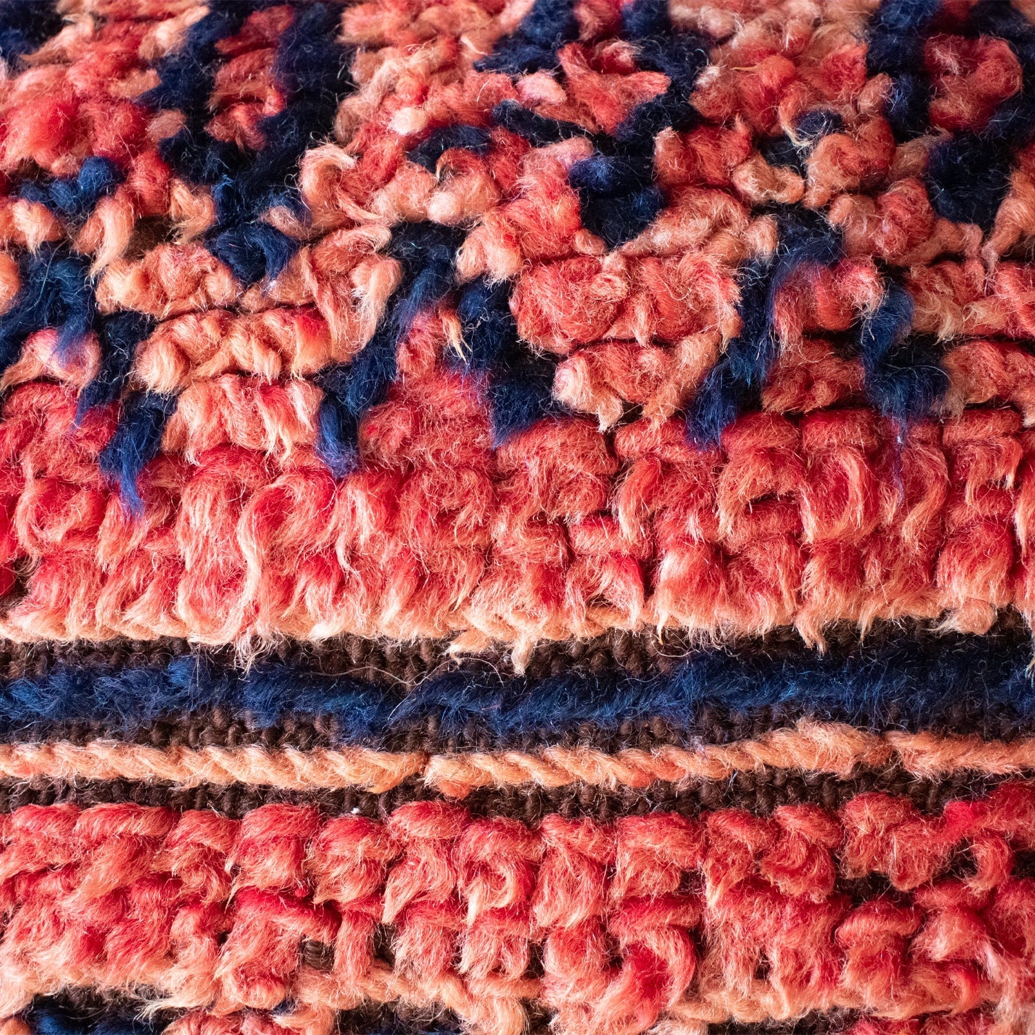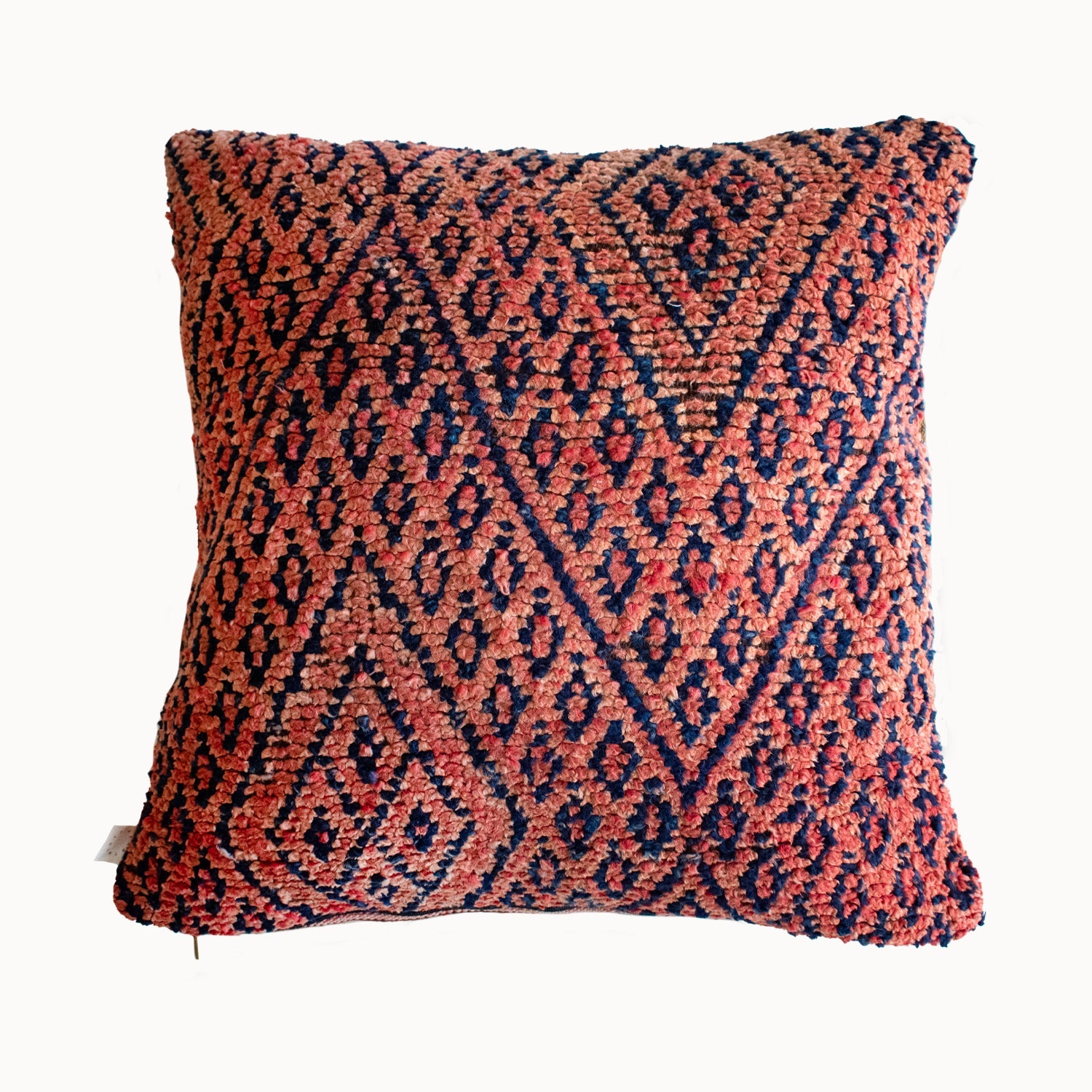 These pillows are each one of a kind and handmade from fragments of vintage moroccan rug. They add the perfect amount of texture and warmth to any combination of pillows. *Please note that the 25x25in option is reversible, with a wool blanket on the bottom side, and can also be used as a floor cushion.