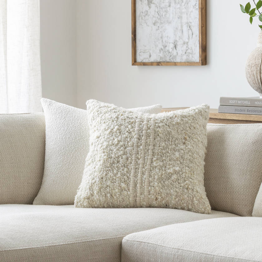 Add a touch of understated elegance to your space with the Juan accent pillow. This charming piece is made of a comfortable blend of cotton and wool, lending both durability and softness that you can enjoy every day. Its beautiful style effortlessly enhances any decor, making it an ideal choice for a cozy living room, inviting guest room, or even a stylish office setup. Originating from India, this pillow carries an exotic appeal and authenticity. The care process is simple and stress-free; just spot clean with mild detergent when needed and lay flat to dry. Treat yourself to this irresistible decor piece that brings comfort and chic design into your home effortlessly.