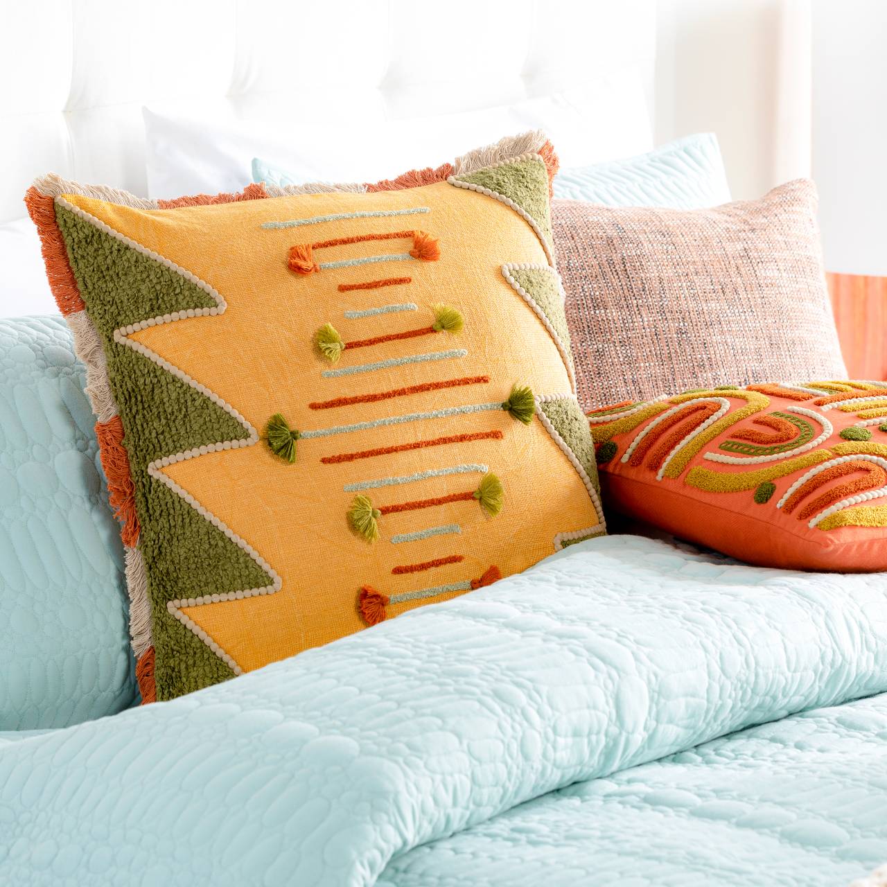 • Colors: Saffron, Taupe, Dark Green, Burnt Orange