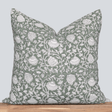 This elegant pillow cover showcases a serene green base adorned with intricate natural cream florals and defined black contours. Handcrafted by artisans using traditional block printing techniques, this design introduces both luxury and a captivating narrative to your space. A refined way to infuse depth, texture, and character into your home with timeless sophistication.