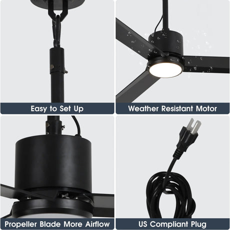 42 Inch Patio Guard IP65 Outdoor DC Motor Black Modern Hanging Buckle Downrod Ceiling Fan with Light