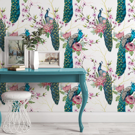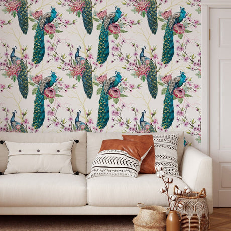 Graceful Peacock Pattern Wallpaper Peel and Stick