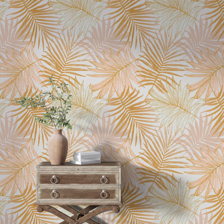 Golden Tropical Leaves Wallpaper Peel and Stick