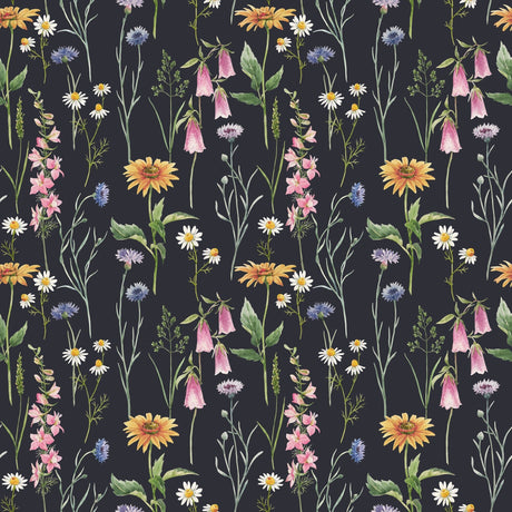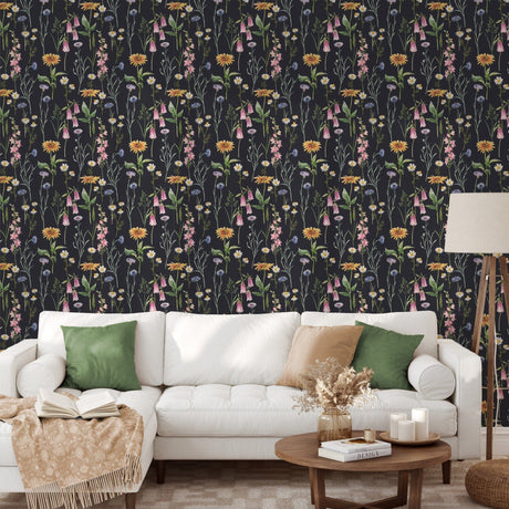 Hand-drawn Wildflowers on Dark Background Wallpaper