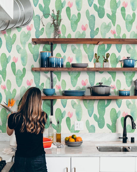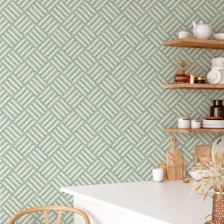 Green Geometric Stripes Pattern Peel and Stick Wallpaper
