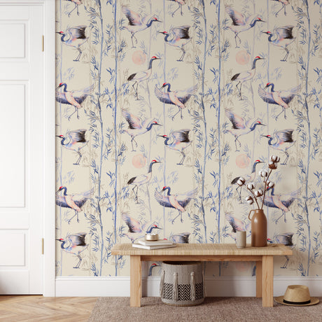 Hand Drawn Watercolor Japanese Cranes Wallpaper