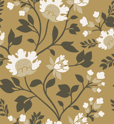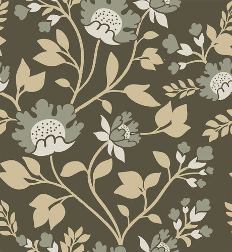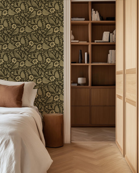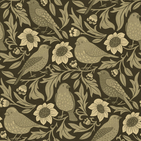 Heritage Birds & Wildflowers - Olive Green Botanical Wallpaper