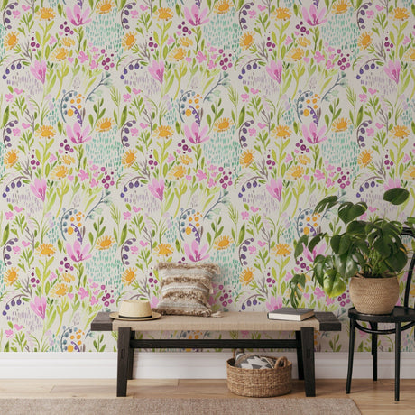 Hedgerow Bloom Wallpaper - Botanical Elegance