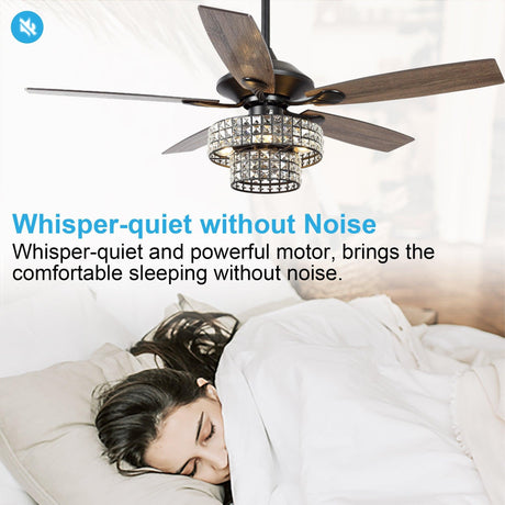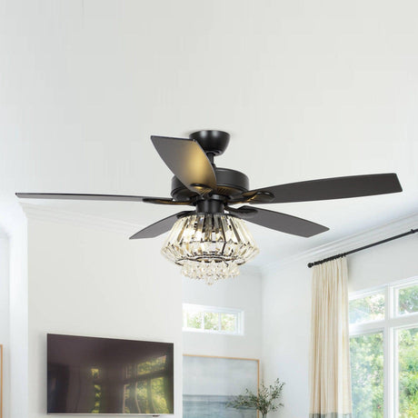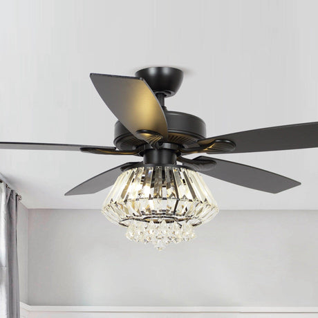 52" Ganga Modern Downrod Mount Reversible Crystal Ceiling Fan with Lighting and Remote Control