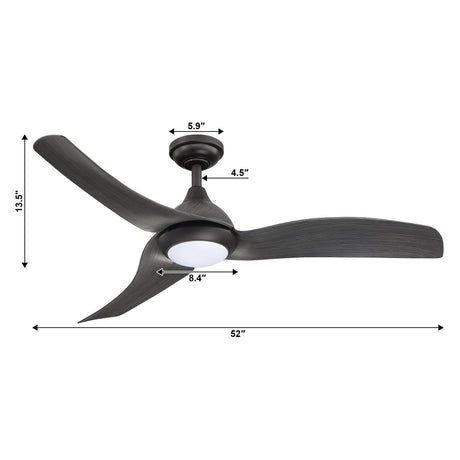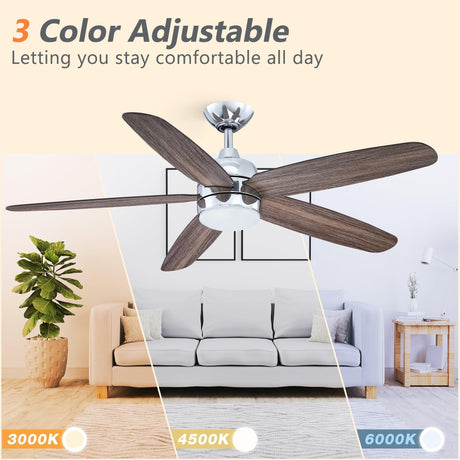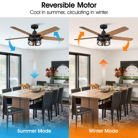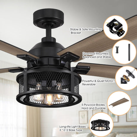 52" Fanelee 5 Blades Industrial Ceiling Fan with LED Lighting