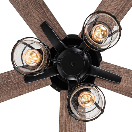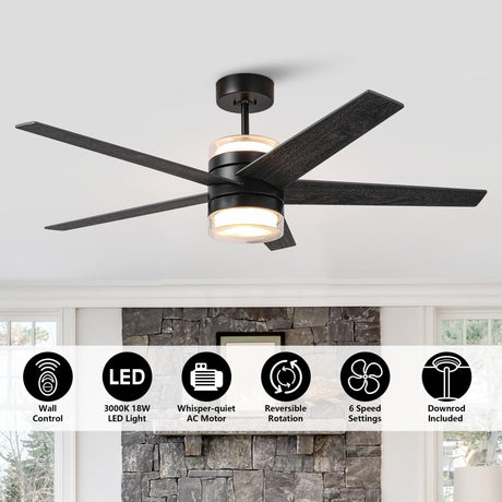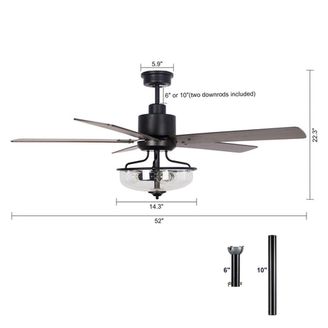 52" Dicken Farmhouse Downrod Mount Reversible Ceiling Fan with Lighting and Remote Control