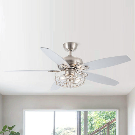 Regular price $138.40Unit price /Unavailable52" Kyla Industrial Brushed Nickel Reversible Caged Ceiling Fan with Lighting