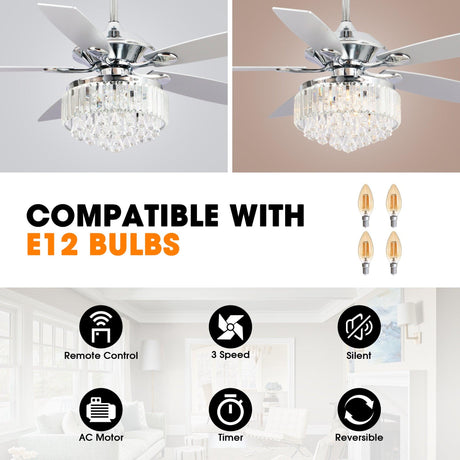 Sale price $145.00 Regular price $199.00Unit price /Unavailable 52" Kanpur Modern Chrome Flush Mount Reversible Crystal Ceiling Fan with Lighting and Remote Control