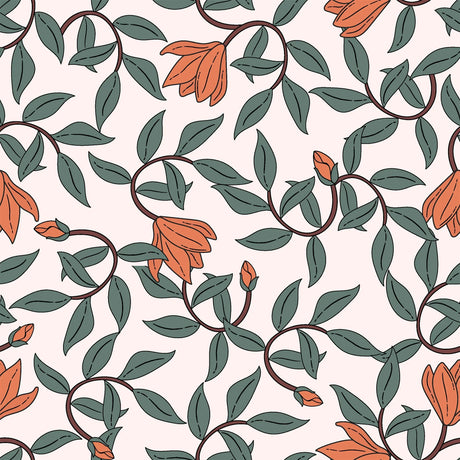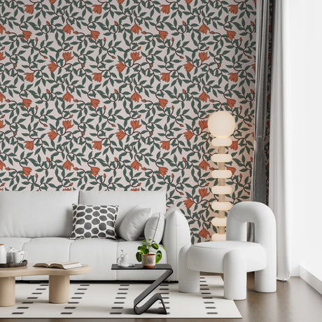 Art Nouveau Wallpaper - Retro Botanical Design with Orange Blooms