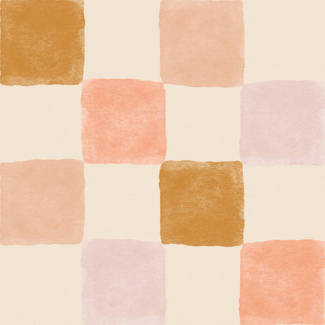 Artisan Checkered Wallpaper - Warm Terracotta and Mustard Tones
