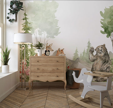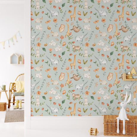 Animal Adventure Nursery Wallpaper - Featuring Rabbits, Giraffes, Elephants & More