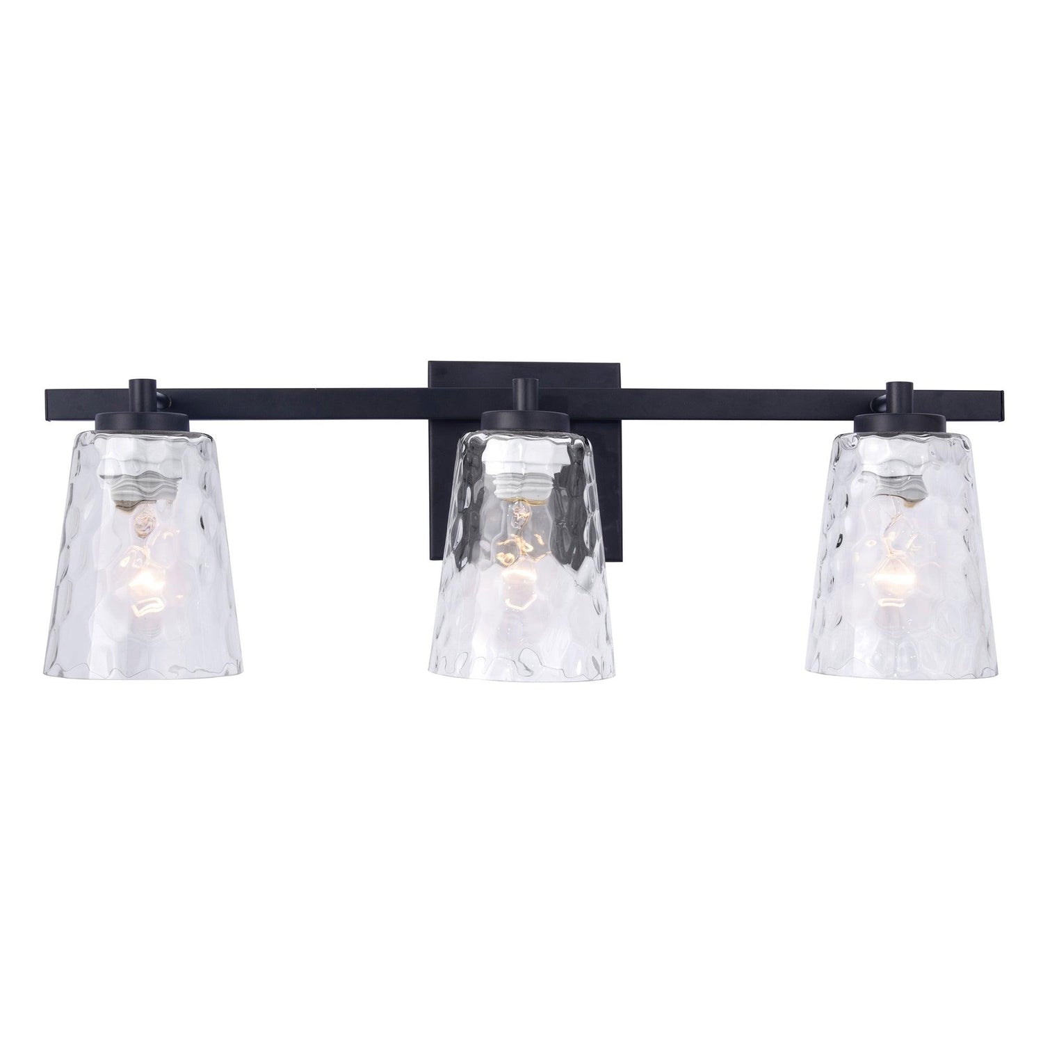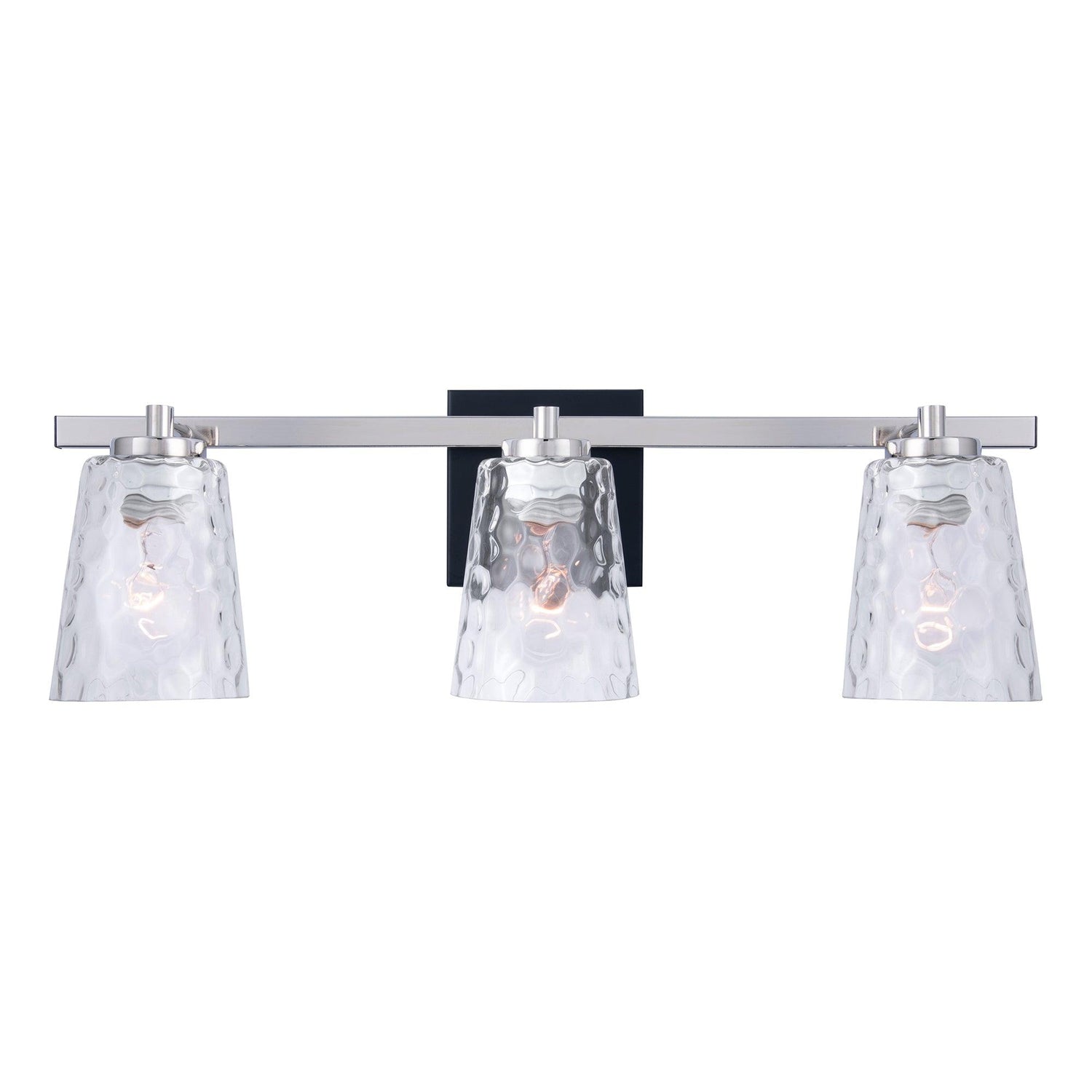 The Radiance Modern 3-Light Vanity Light is the perfect addition to any modern bathroom. Made from durable steel, this vanity light is built to last and features clear textured glass shades that provide a soft and warm glow.