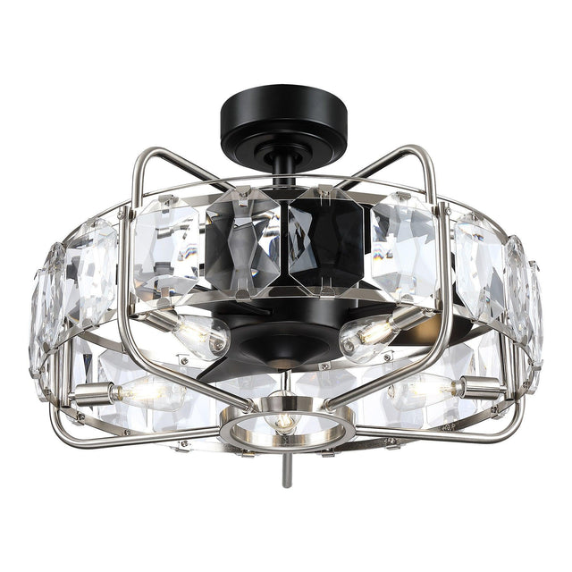 Check out this fandelier chandelier that makes a statement with its vintage industrial, two-tone style, it perfectly combines classic and modern styles. This unique light frame is in brushed nickel and matches the black light canopy, the fan blades are in silver. The lights are surrounded by artful and elegant crystal-embedded shade for a delightful and dreamy look.  It features a reversible, multiple-speed powerful motor, and delivers an ultra-powerful airflow with quiet performance. It can be run in the winter to aid in rotating warm air and cutting down on energy costs. The reverse airflow feature allows you to quickly change the direction of the fan, for proper distribution of air. All functions of our ceiling fan with lights and remote can be easily controlled by the remote control.