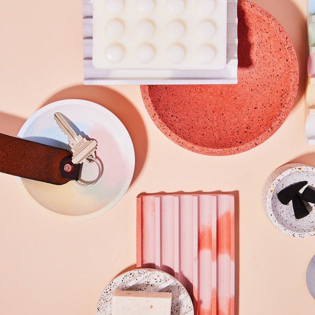 For the tiny desktop items like paper clips and tacks. These beautiful concrete vessels will keep your desk looking so fresh and so clean.