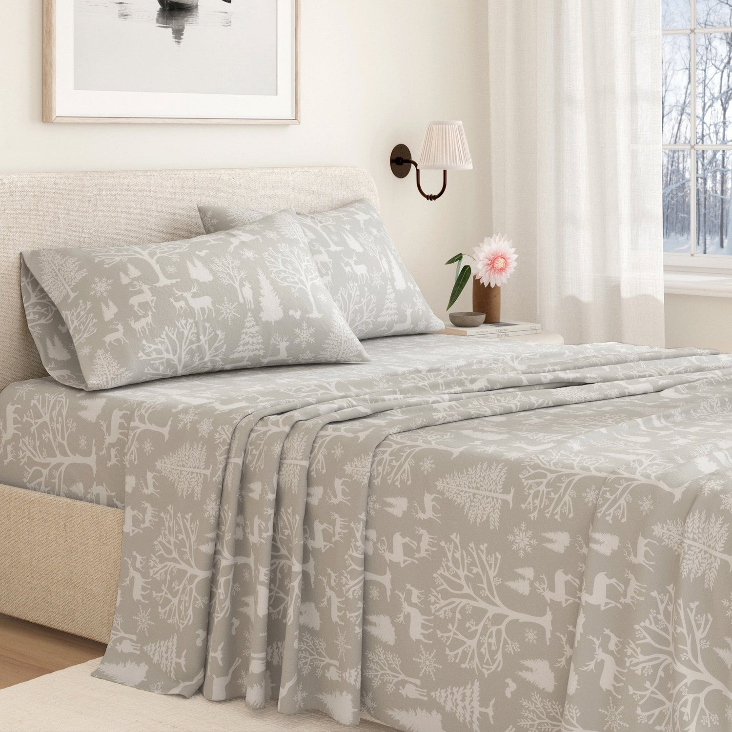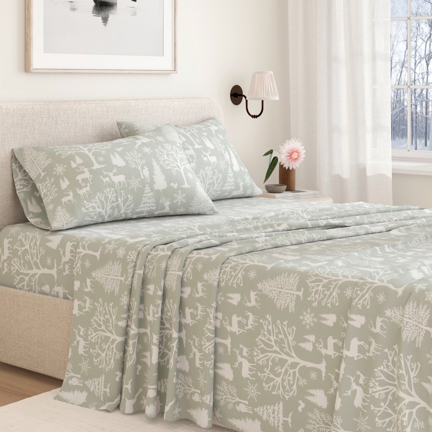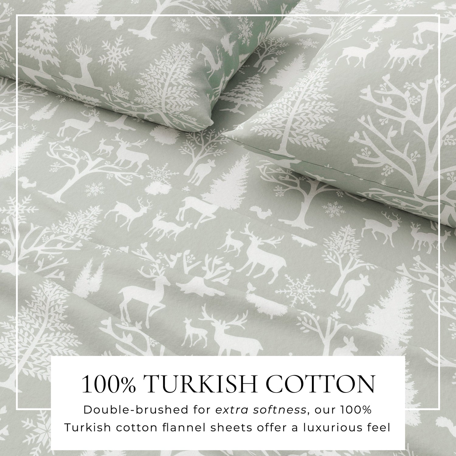 Embrace the rustic charm of the outdoors with these 100% cotton flannel sheets, perfect for bringing a cozy lodge aesthetic to your bedroom. This collection features an array of outdoorsy lodge prints that capture the essence of nature, making them your go-to choice for fall and winter bedding. These sheets are soft and warm, providing comfort during the coldest nights. They are ideal for busy families as the cotton makes them naturally durable, soft, and easy to care for - lasting many washes.