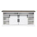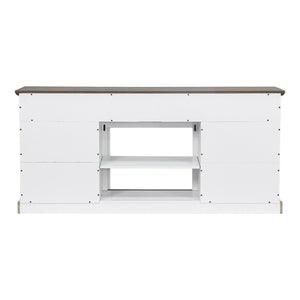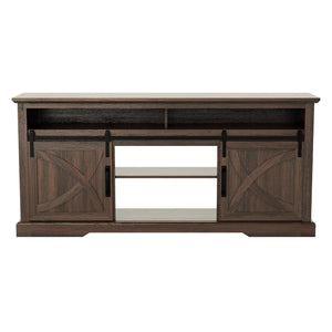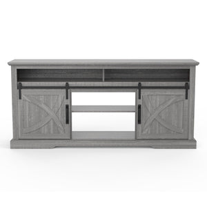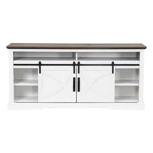 Imbue your living area with the rustic allure of our farmhouse-style TV cabinets. More than just a media console, this fashionable furnishing injects both utility and personality into your home. This multifunctional cabinet not only serves as a TV stand but also doubles as a storage unit, providing a neat solution for organizing DVDs, game boxes, and decorative items. The unique sliding barn doors, guided by top-notch steel bars, allow effortless access to side cabinets or central shelves, ensuring all movements are smooth and silent. Crafted from certified high-grade wood, its robust construction guarantees both durability and stability. The cabinet arrives with lucid assembly instructions, simplifying the setup process and making it a perfect enhancement to your home decor.