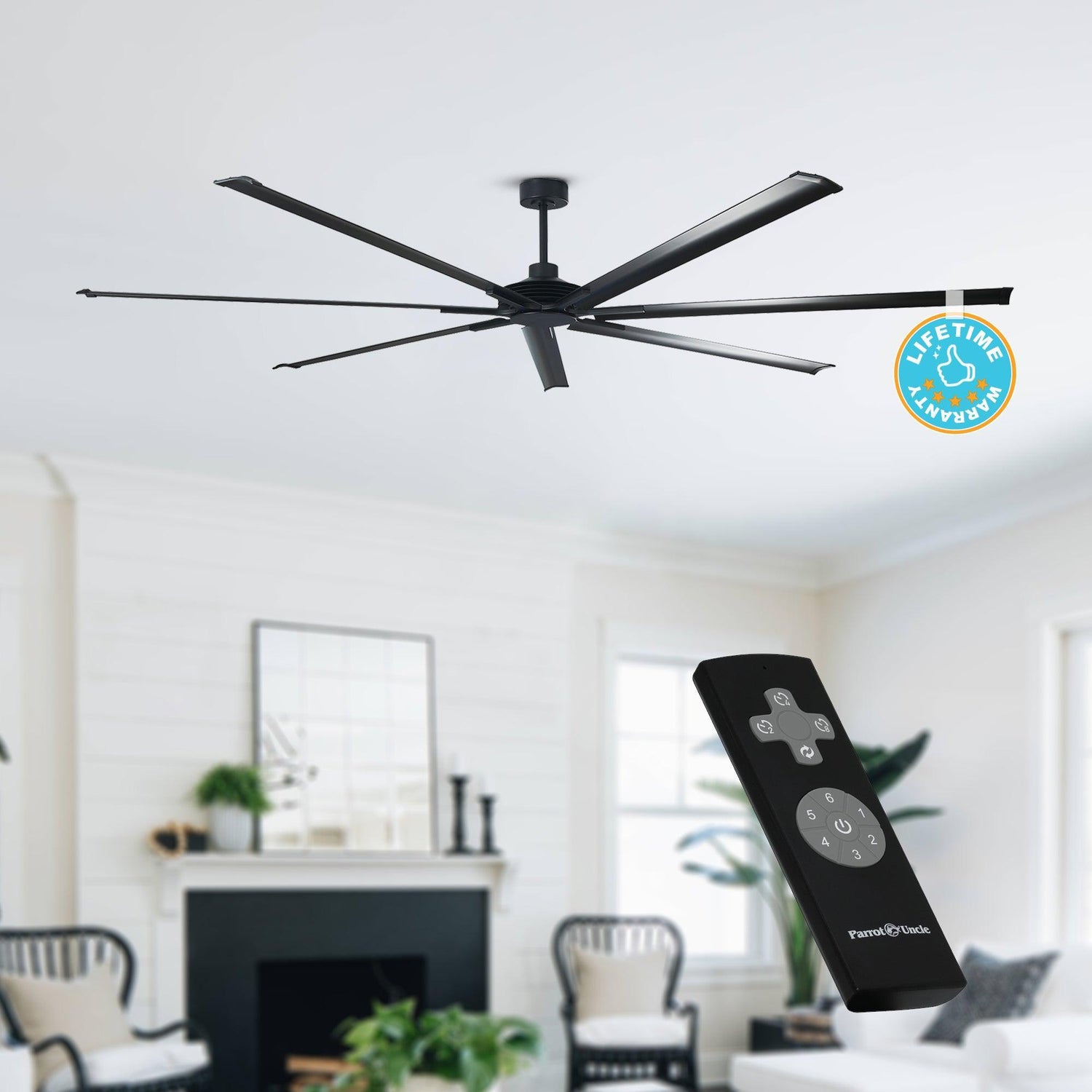 This 84-inch/100-inch industrial extra-large size ceiling fan with a remote control function is designed for large indoor spaces. The 7-blade aluminum reversible fan blades perfectly complement the sophisticated urban edge. The suspension system supports 11-degree ceiling installation. Equipped with an 8-inch/12-inch boom for easy installation and use. It also comes with a 6-speed remote control. The maximum air volume value is 11200CFM/11500CFM. In summer, the air of this ceiling fan flows downward, producing a refreshing breeze. This ceiling fan reverses the flow in winter, spreading warm air evenly throughout the room.