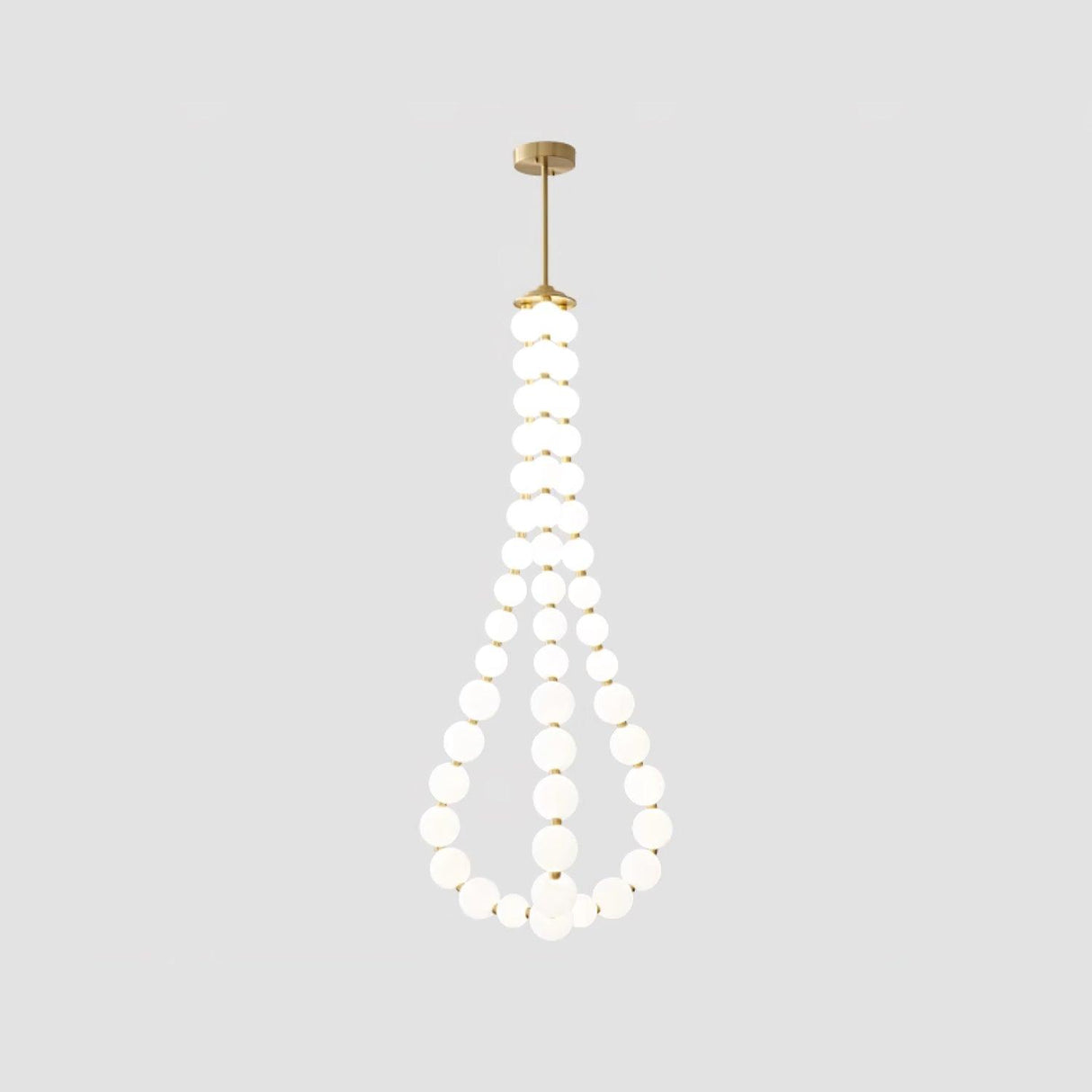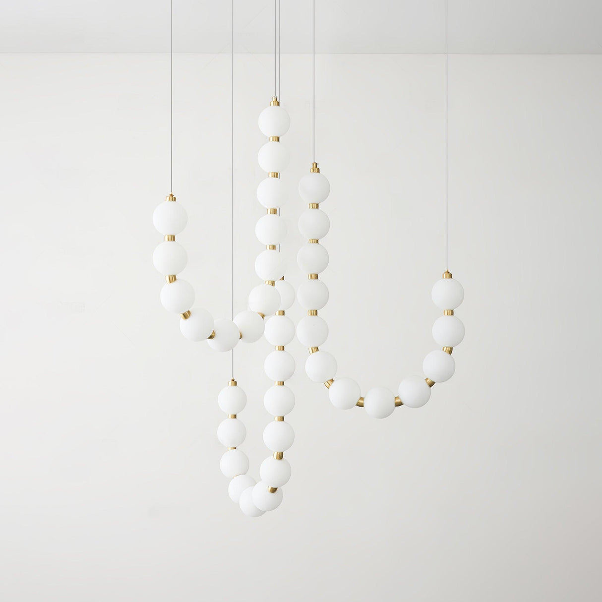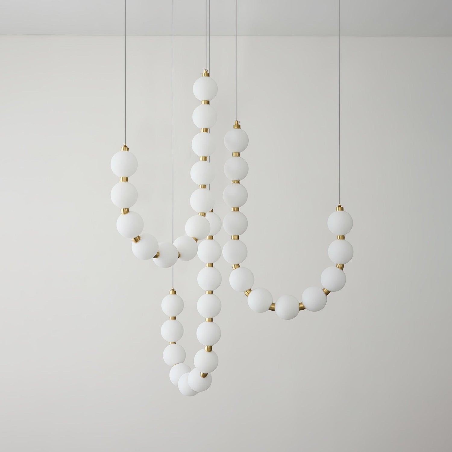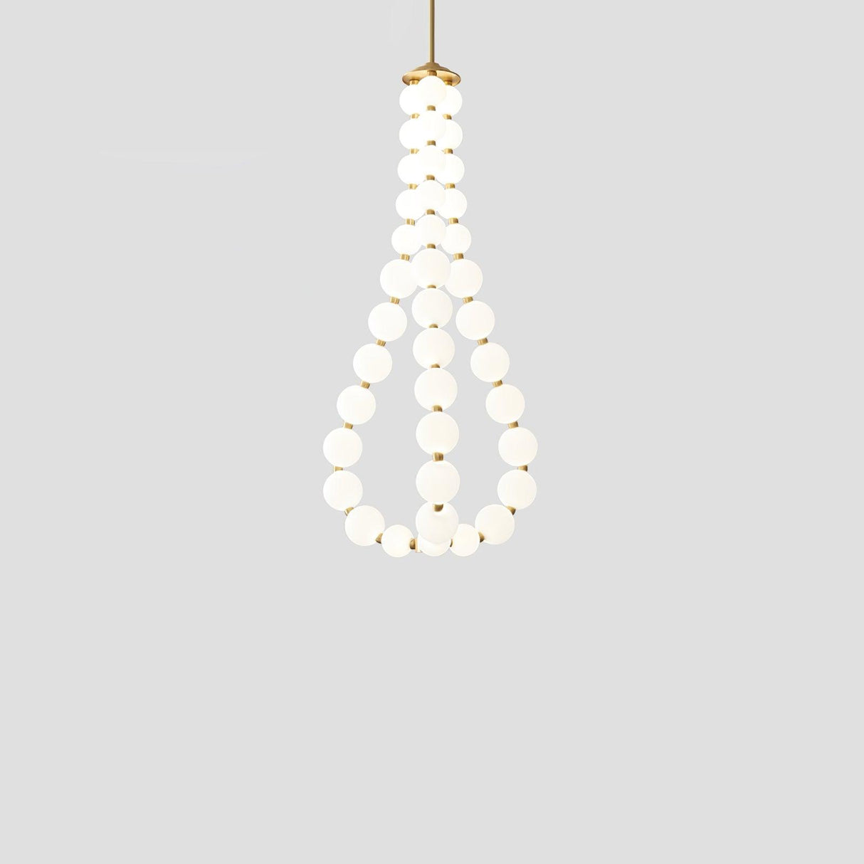 The Acrylic Pearl Necklace Chandelier brings radiance to any room with its brass base and white plastic orbs. Its exceptional design captures attention and admiration, blending a one-of-a-kind style with timeless and universal appeal. The chandelier's illuminating forms accentuate the interior of your home, fostering a welcoming and comfortable environment for socializing and quality family time.