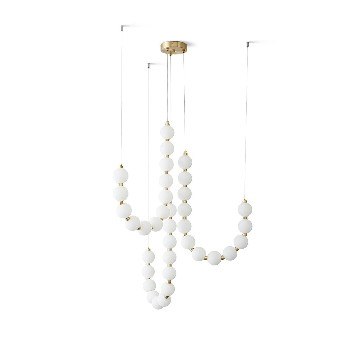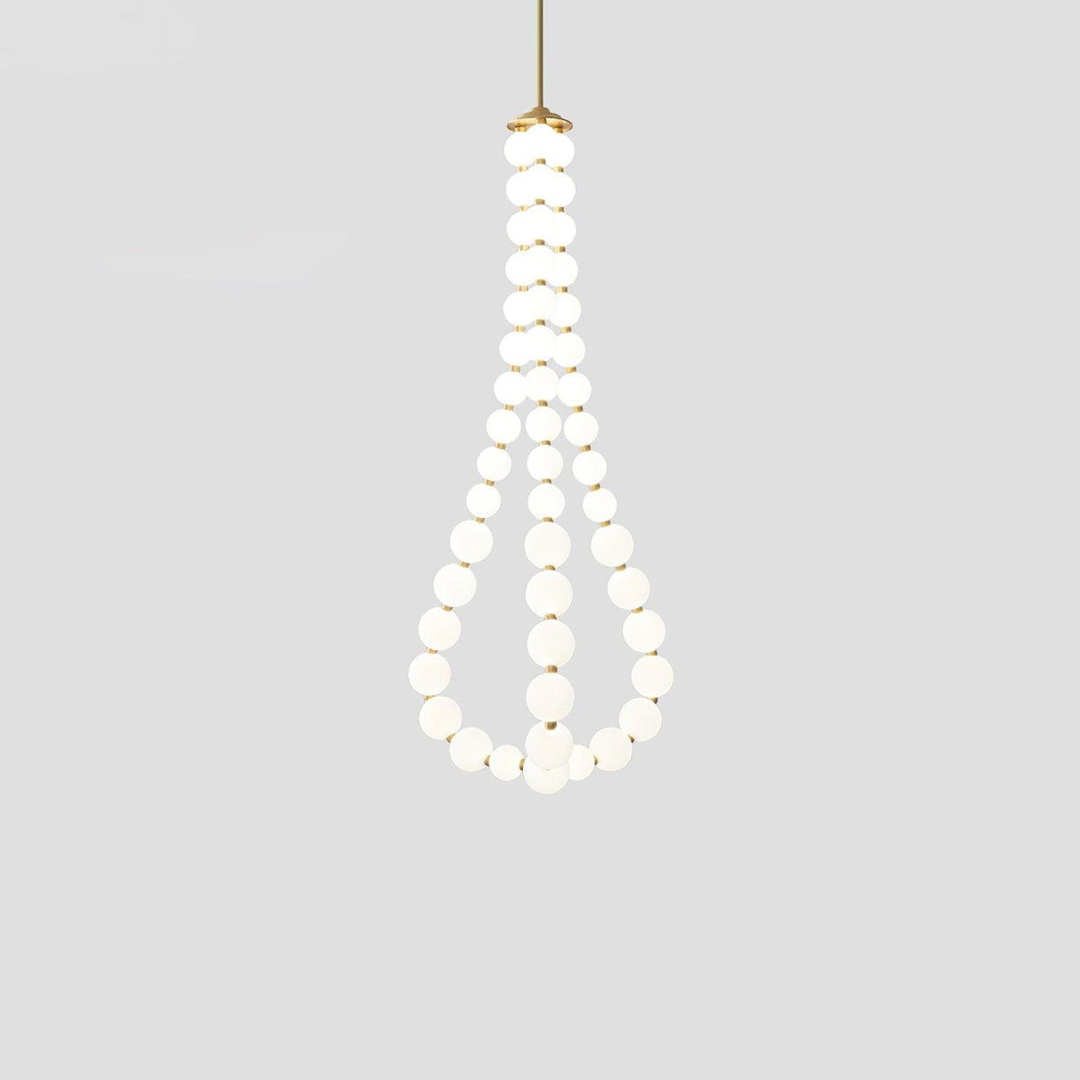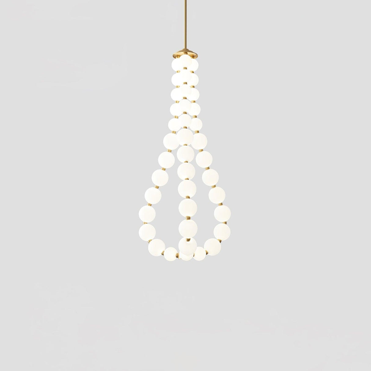 The Acrylic Pearl Necklace Chandelier brings radiance to any room with its brass base and white plastic orbs. Its exceptional design captures attention and admiration, blending a one-of-a-kind style with timeless and universal appeal. The chandelier's illuminating forms accentuate the interior of your home, fostering a welcoming and comfortable environment for socializing and quality family time.