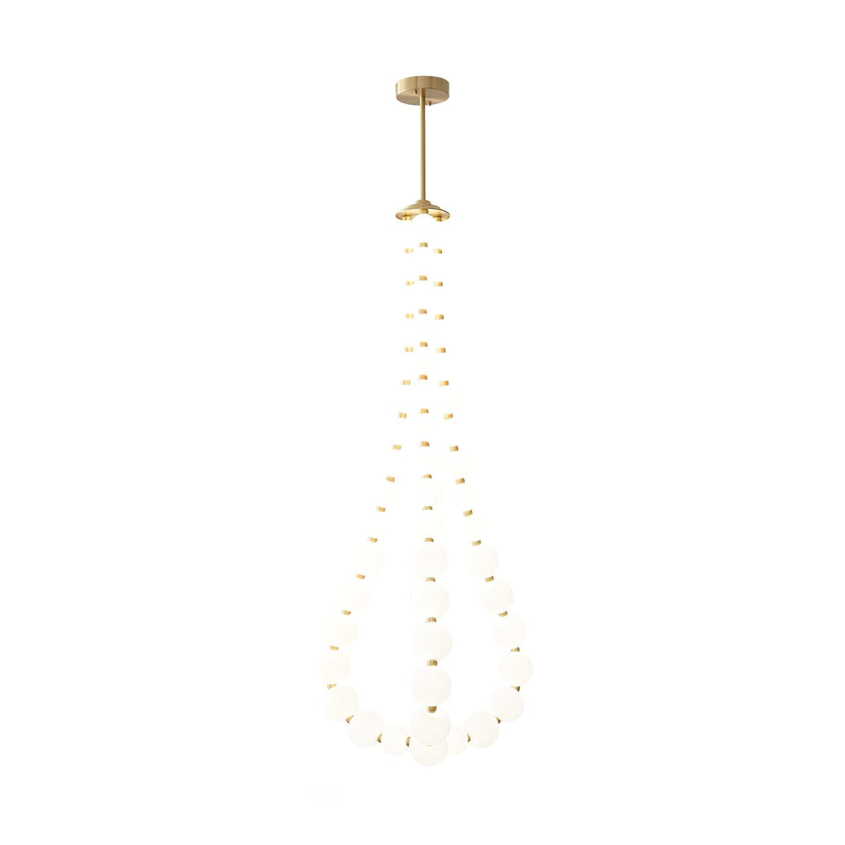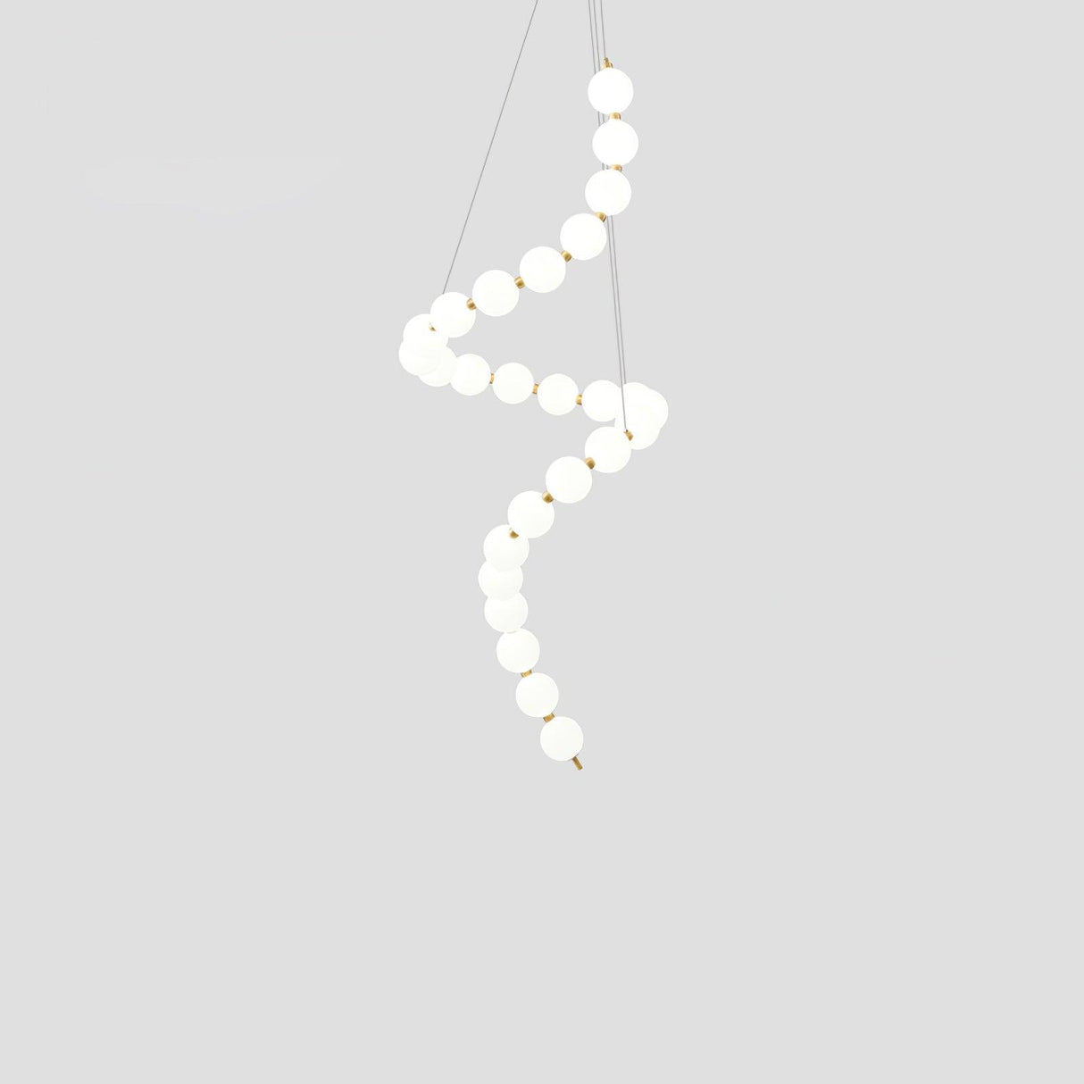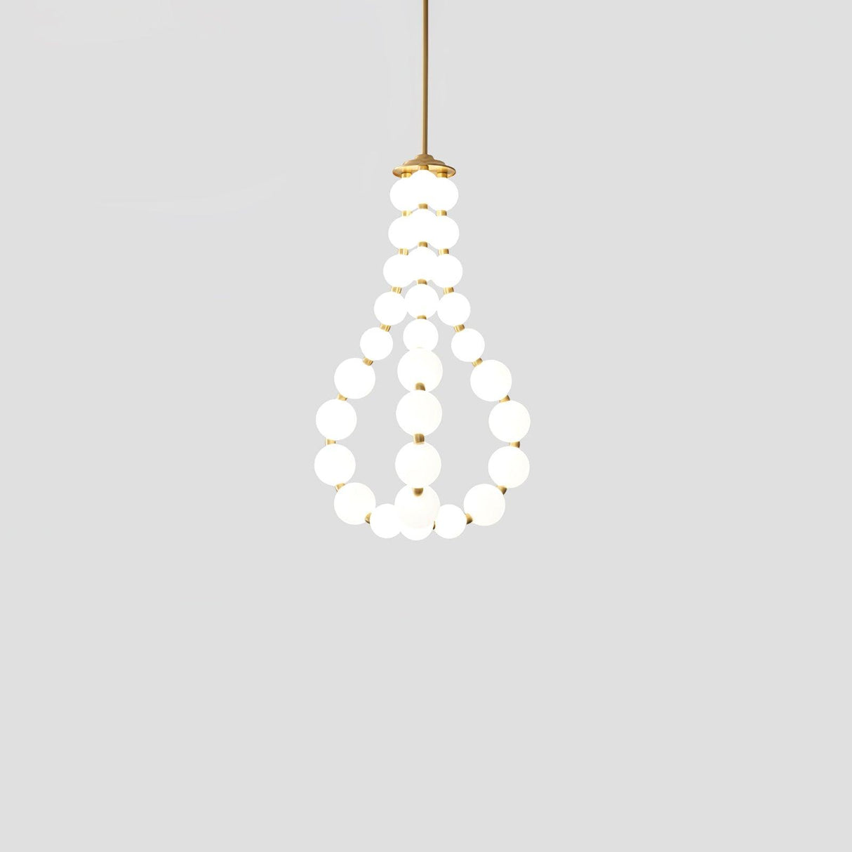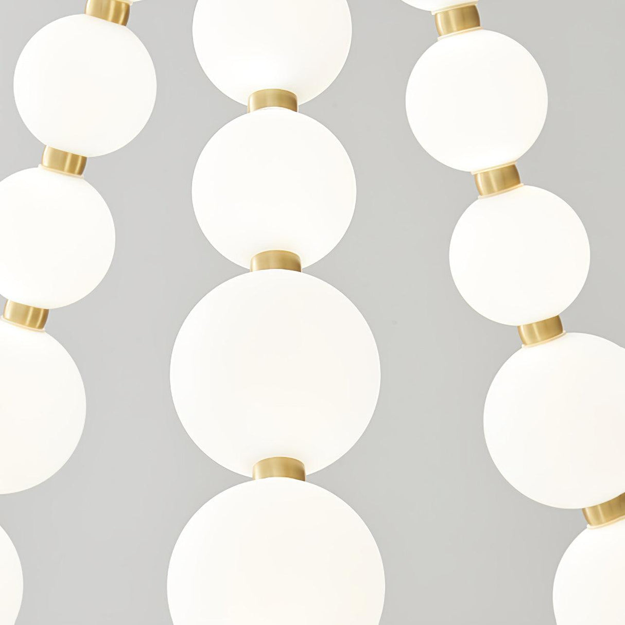 The Acrylic Pearl Necklace Chandelier brings radiance to any room with its brass base and white plastic orbs. Its exceptional design captures attention and admiration, blending a one-of-a-kind style with timeless and universal appeal. The chandelier's illuminating forms accentuate the interior of your home, fostering a welcoming and comfortable environment for socializing and quality family time.