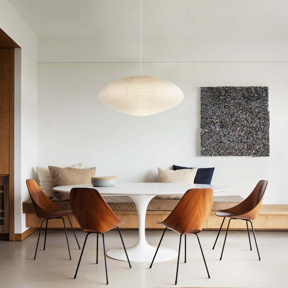 The Akari lights are handcrafted of bamboo ribbing and translucent washi paper that is made from the inner bark of the mulberry tree. Designer has compared the light of Akari to sunlight filtered through traditional shōji paper doors – the light sculptures create a warm glow and pleasant ambience. According to Designer, "All that you require to start a home are a room, a tatami, and Akari.”
