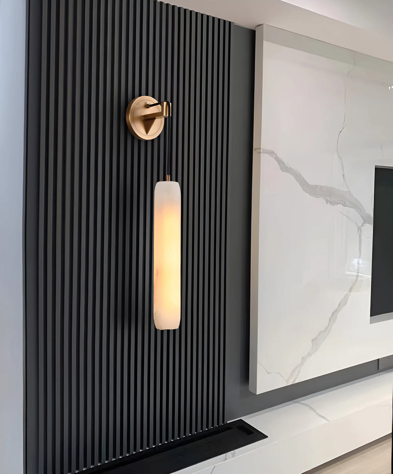 Add a touch of timeless sophistication to your space with the Alabaster Flute Wall Lamp. Featuring a refined flute-inspired silhouette and crafted from genuine alabaster, this wall fixture exudes quiet luxury and modern grace. More than just a light fixture, the Alabaster Flute Pendant Wall Lamp is an artistic expression of refinement. Let it transform your walls into a gallery of modern serenity.