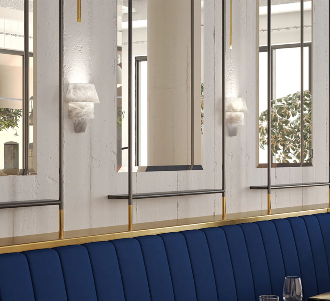 Illuminate your space with this stylish Alabaster Laboratory Cone Wall Light. The precise and symmetrical proportions of its three different sized Alabaster cones create an eye-catching geometric shape that provides abundance of uplight. Smooth lines and luminescence add a touch of elegance to your room. Upgrade your lighting now!