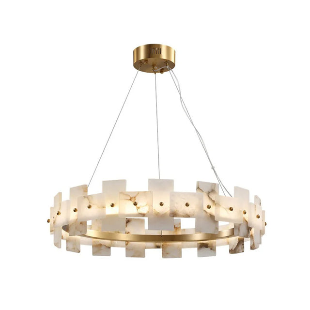Transform your space with the Alabaster Elba Brass Chandelier. Crafted by our chief designer, it features a herringbone pattern in alabaster with stunning white swirls. Elevate any room with the laid-back elegance of a holiday island. Perfect for hallways, bedrooms, or living rooms.
