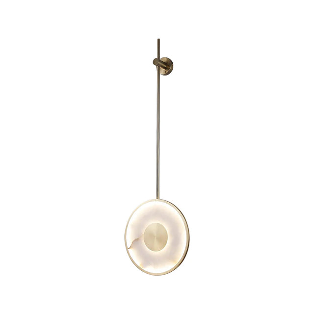 Behold the Alabaster Modern Round Strip Wall Lamp, a stunning blend of light and darkness, stone and metal. A perfect alignment of elements produces a mesmerizing effect - the subject, its crescent-shaped light center, and the metallic rim harmoniously fuse to create a radiant halo of light.
